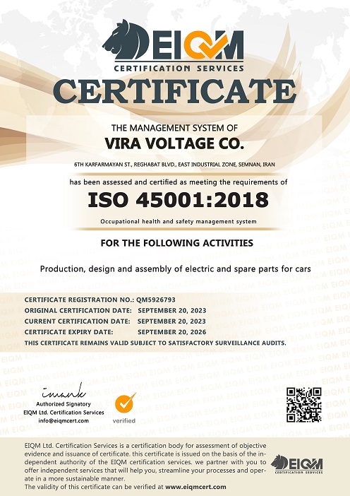 هدف اولیه این سازمان بر این بوده که کلیه قطعات تولیدی ساخت داخل باشد و امروز مفتخر است که به این هدف نائل گردیده و در راستای شعار سازمانی ویرا ولتاژ، کیفیت، ایمنی، اصالت، موفق به اخذ گواهینامه های بین المللی معتبر از جمله ISO 9001 و IATF 16949 شده است.